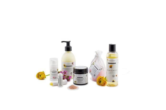 Nach einem langen Arbeitstag ist das „Verwöhnbad“ genau das Richtige. Vitaminreiche Hagebutte kombiniert mit dem zarten Duft von Vanille und Zimt sorgen für ein Duftbad der sinnlichen Art. Wussten Sie übrigens, dass Hagebutte barrieregestörte Haut in ihrer Selbstregulierung unterstützt? Aber auch das Badesalz „Kräutertraum“ kann wahre Wunder wirken: Naturreines Bergkristallsalz und wertvolle Essenzen von kraftvollen Kräutern helfen der Haut zu entsäuern und setzen blockierte Energien frei. Das hilft beim Regenerieren – und gibt frische Power.