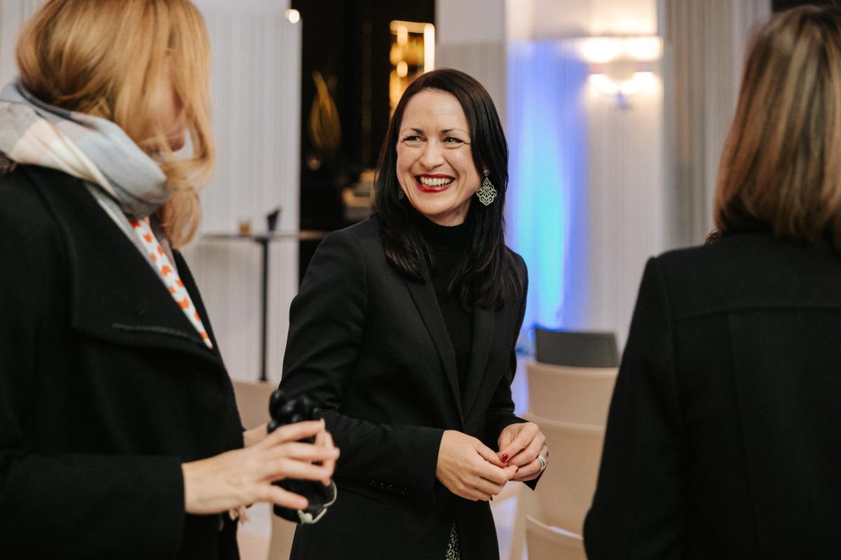 Bei der anschließenden Diskussionsrunde ging es um die Frage, in wieweit die neuen Leadership-Modelle in der Finanzwelt schon greifen. Neben Kinka Gerke nahmen Goldman Sachs Top-Managerinnen Bregje Roosenboom, Fixed Income Client Portfolio Management EMEA sowie Gastgeberin Sandra Straka, Head of TPW Client Business Germany & Austria Platz. Unter der Moderation von Kristin Hanusch-Linser, Herausgeberin von sheconomy, entstand ein anregender Talk über die Herausforderungen und Chancen weiblicher Führung.