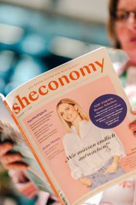 Was bedeutet Nachhaltigkeit also? „Gerade für Unternehmer:innen ist diese Frage relevant. Sie müssen sie für sich schlüssig beantworten, um sich zukunftssicher aufzustellen“, weiß Dagmar Zimmermann, Redaktionsleiterin Deutschland der Sheconomy. „Die Lösung kann sehr unterschiedlich – und immer wieder spannend – aussehen. Das ist der Grund, warum wir diese Ausgabe unter die Themen Nachhaltigkeit und Investitionen stellen. Nachhaltigkeit steht auf der Agenda der CEOs, Gründerinnen, Neu- und Umdenkerinnen.“