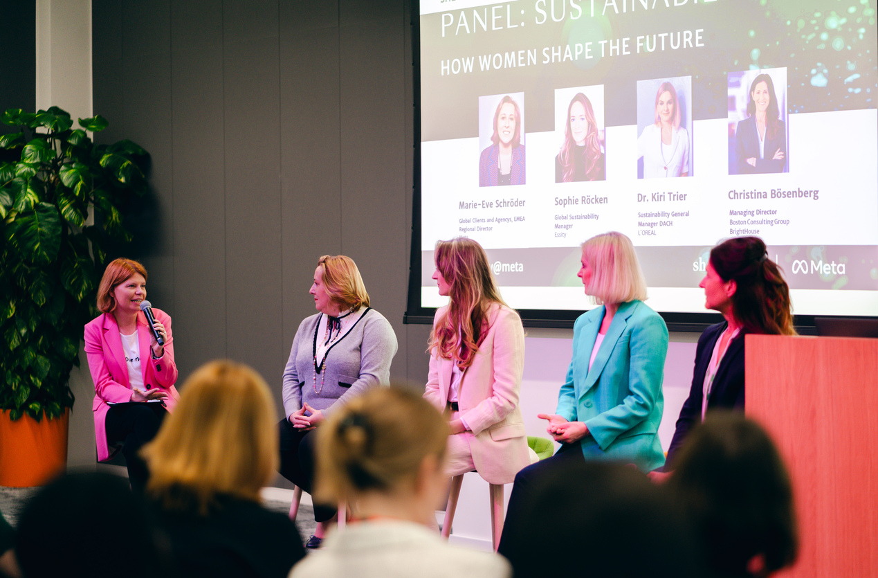 Unternehmen, die rund ein Drittel Frauen in ihren Vorständen vorweisen können, erzielen auch hervorragende Nachhaltigkeitsergebnisse. „Und zwar ohne, dass diese Frauen speziell für Nachhaltigkeit verantwortlich sind – alle C-Level-Rollen führen zu diesem Ergebnis. Frauen an der Spitze des grünen Wandels zu positionieren, ist deshalb keine Frage der Gleichberechtigung, sondern eine strategische Notwendigkeit“, so Christina Bösenberg, Managing Director und DEI Lead bei Boston Consulting (BCG), im Zuge der Diskussionsrunde anlässlich der offiziellen Premiere der Deutschland-Ausgabe von Sheconomy. Im neuen Office von Meta auf dem Campus der Ideen feierten 150 Gäste das neue Medienangebot.