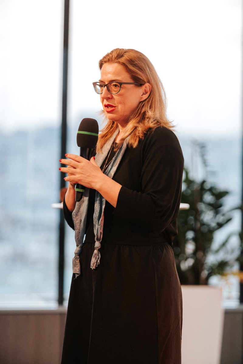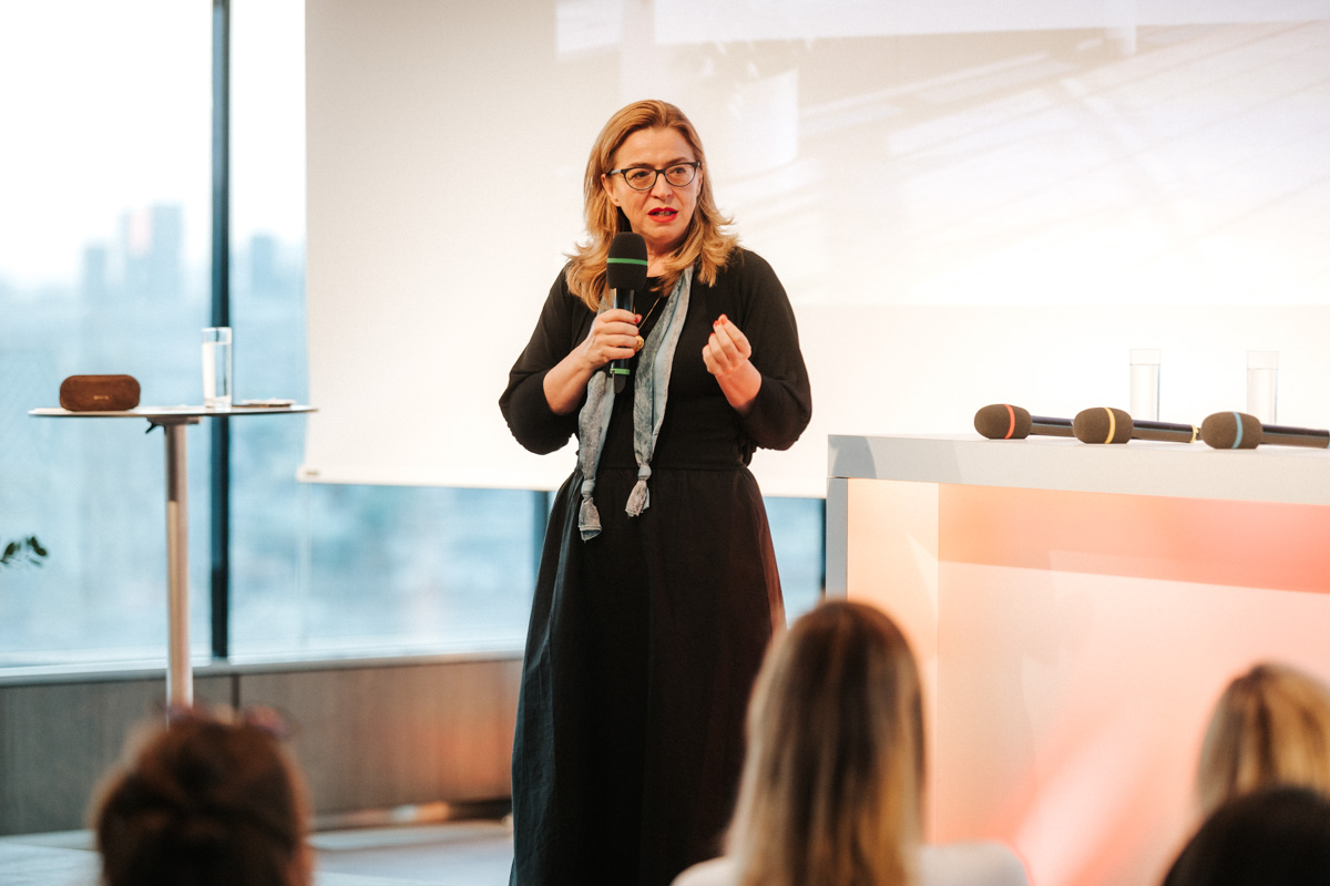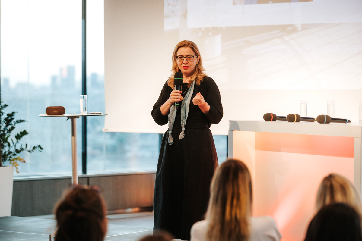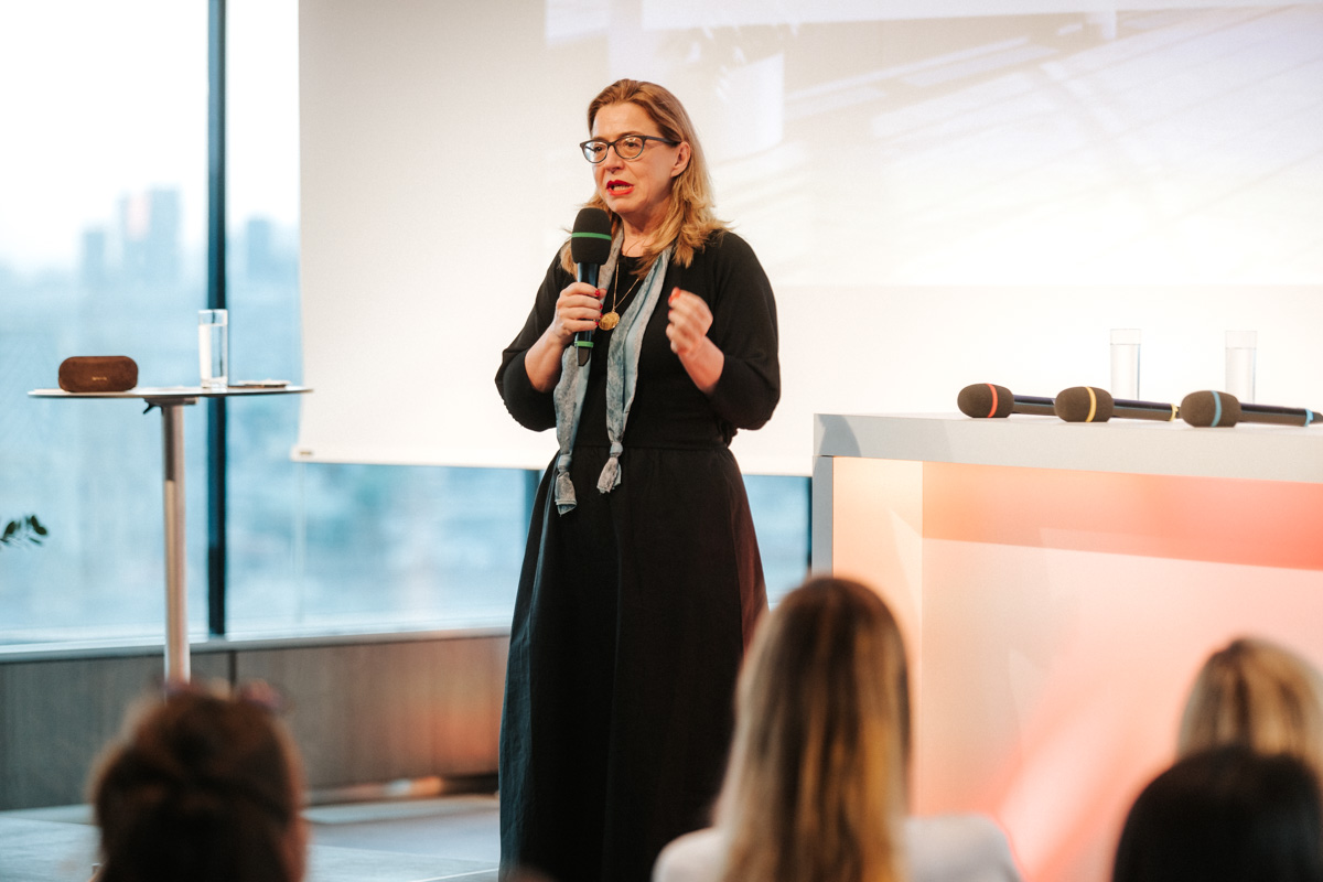 Nina Zimmermann, CEO der Arbeitgeber-Bewertungsplattform kununu, brachte in die Diskussion vor rund 100 Gästen eine datenbasierte Perspektive ein. Mit ihrer Plattform hat sie ein tiefes Verständnis davon entwickelt, wie Mitarbeiter:innen insbesondere der jungen Generation über ihre Arbeitsplätze denken. Sie betonte jedoch die Kluft zwischen der Außendarstellung von Unternehmen und der Realität im Inneren: „Es gibt oft eine riesige Kluft zwischen dem, wie sich Unternehmen nach außen positionieren, und dem, wie es intern tatsächlich läuft“, so Zimmermann. Dies sei besonders in Bereichen wie Umweltfreundlichkeit und kollegialer Zusammenarbeit sichtbar. „Eine traurige Erkenntnis ist, wenn es jemanden nicht direkt betrifft, interessiert es keinen“, fügte sie hinzu und  führte das Thema „Frauenförderung“ an, das meist nur Frauen interessiere und keine Männer. „Themen wie Geschlechtergerechtigkeit finden oft nicht die notwendige Beachtung, wenn sie nicht alle gleichermaßen betreffen“, so Zimmermann.
