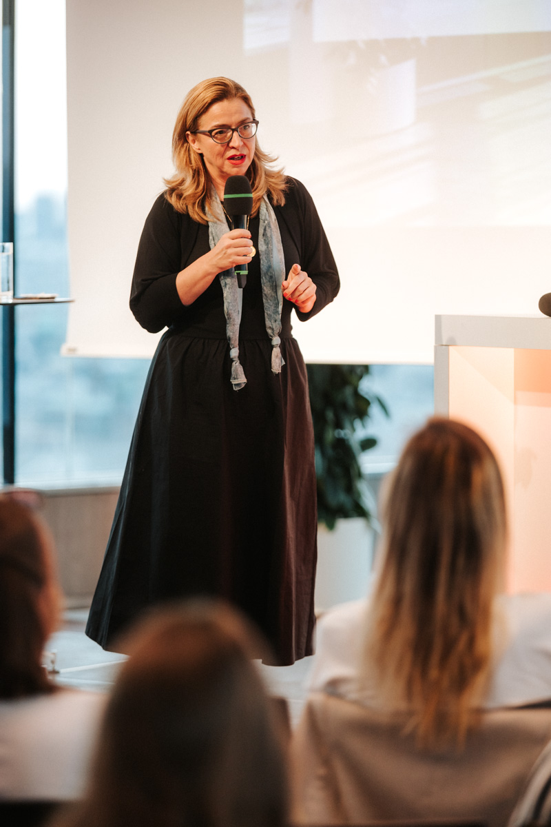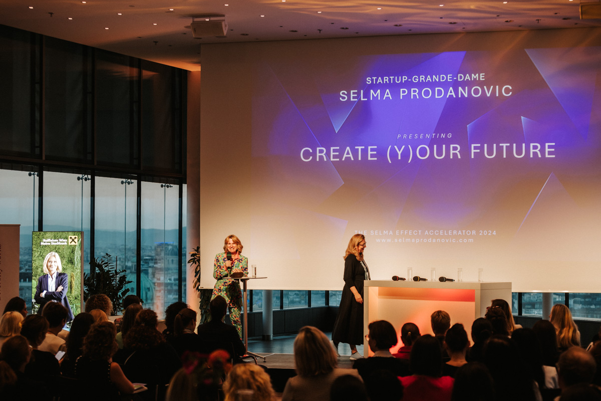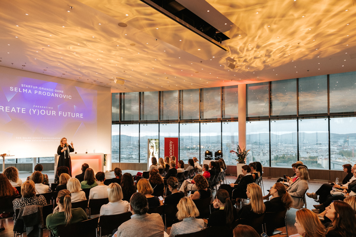 „Think and dream bigger: It was never such a good time to be a woman!“ Ein besonderer Höhepunkt des Abends war die Keynote von Selma Prodanovic, Grande Dame der österreichischen Start-up-Szene. Ihr Ziel: eine Milliarde Menschen zu erreichen, indem sie Gründer:innen und Entrepreneur:innen weltweit zusammenbringt und unterstützt. „Es geht darum, etwas zu schaffen, das Sinn macht“, so Prodanovic. Sie betonte, dass der Erfolg nicht nur an finanziellen Gewinnen gemessen werden sollte, sondern an der positiven Wirkung, die ein Unternehmen beziehungsweise eine Unternehmerin  auf die Gesellschaft haben kann. Die Zukunft gehört denjenigen, die Verantwortung übernehmen, mutig neue Wege beschreiten, dabei nie das große Ganze aus den Augen verlieren –  und größer über das eigene Vermächtnis reflektieren, denn die Power einer einzigen Person hat eine ungeheuere Wirkung. „Empower others to empower“, war eine der Keymessages, die Prodanovic den Teilnehmer:innen mit auf den Weg gegeben hat.